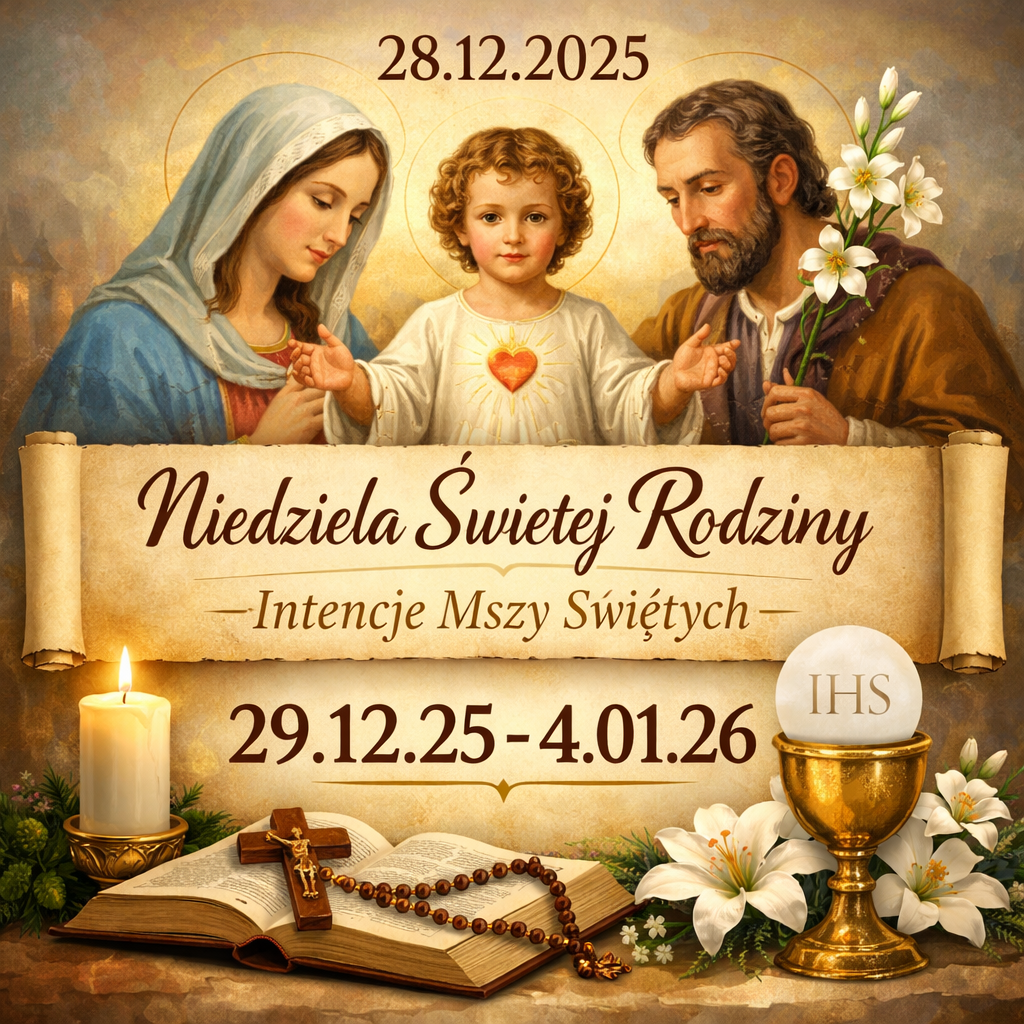 Intencje Mszy Św. 29.12.25 – 04.01.26 Udostępnij na Click to share on Facebook (Opens in new window) Facebook Click to share on X (Opens in new window) X